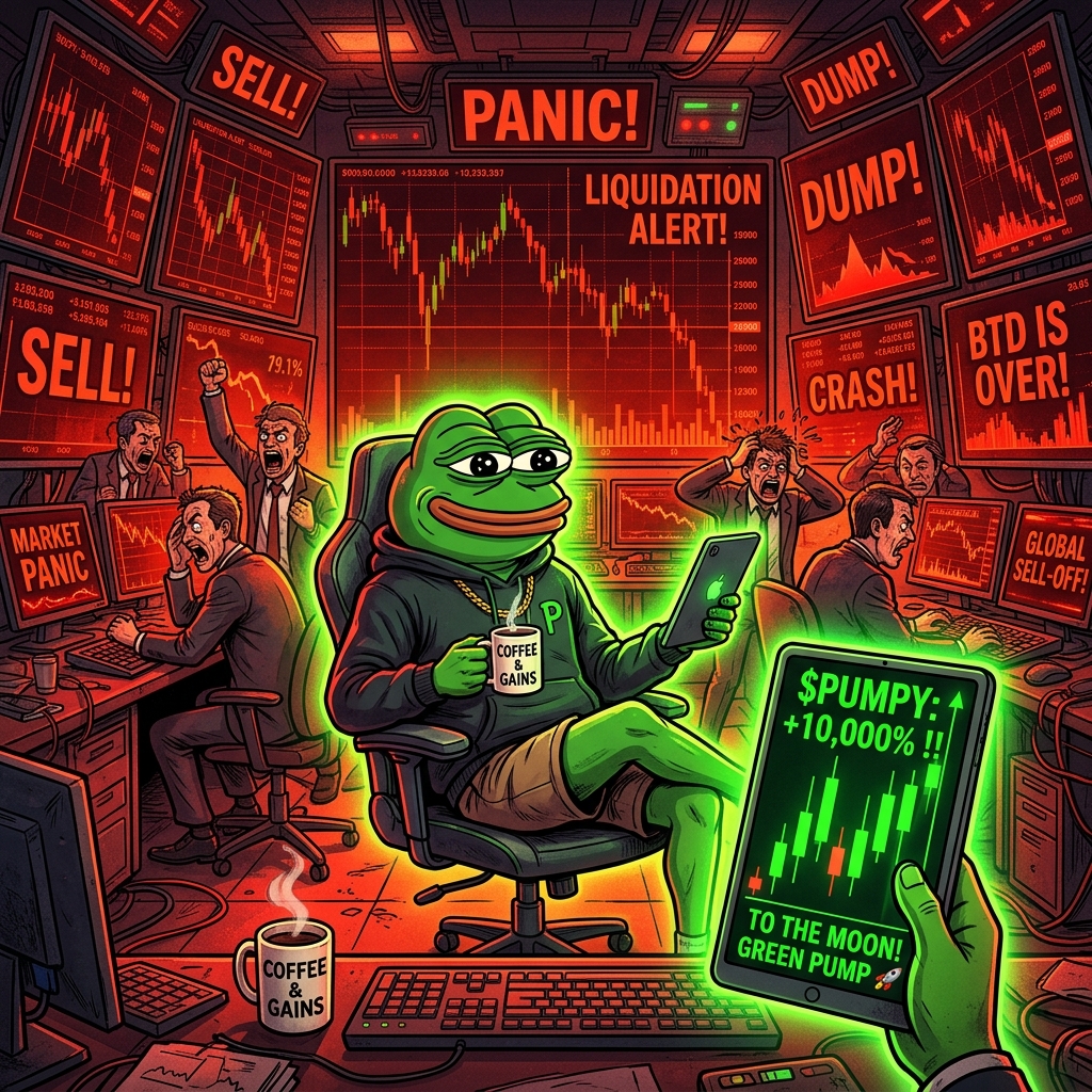 The world can panic… markets can shake… chaos can hit from every angle… PUMPY doesn’t care. He pumps anyway. 💪📈